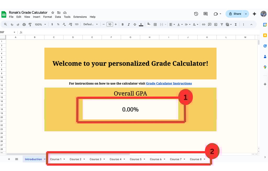 In the section marked with a red border, you will see your overall GPA. This number is automatically calculated based on all the courses you enter.