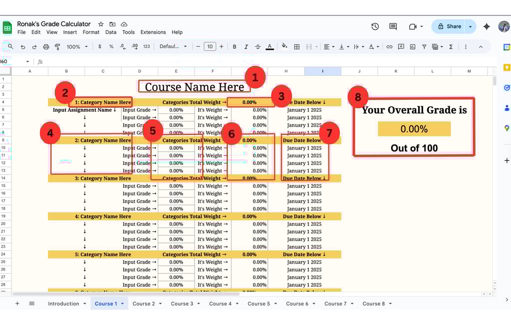 This page will guide you through each section of the Grade Calculator and explain how to use it effectively. By following these instructions, you’ll be able to track your grades more easily and stay organized throughout the term.
